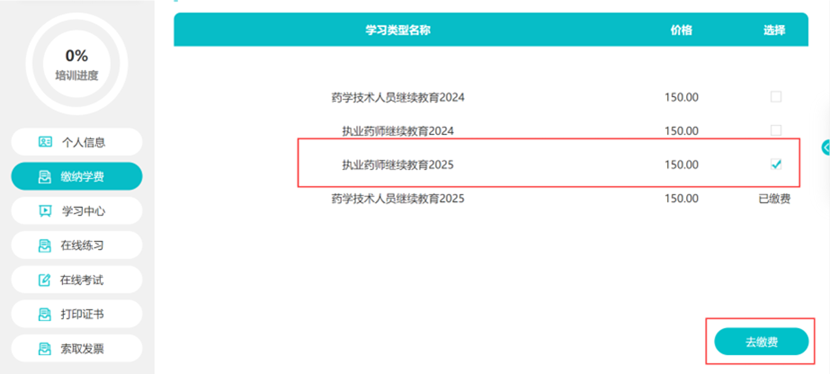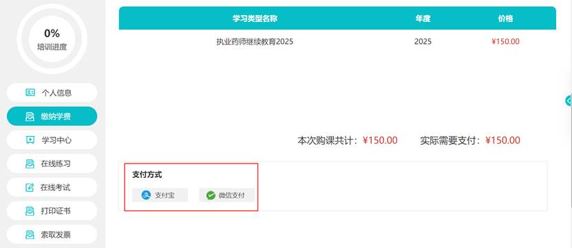 完善个人信息后,进入“选课缴费”,可选微信或支付宝进行支付