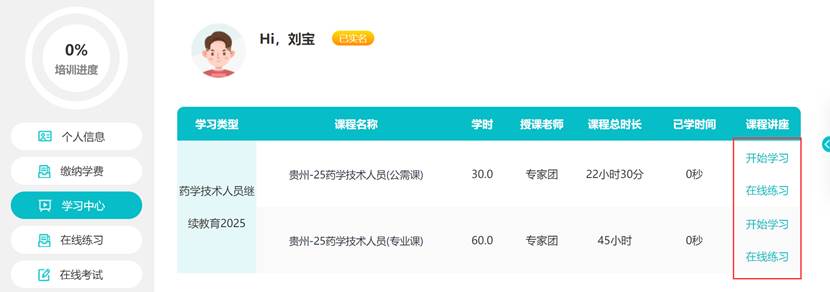 缴费成功后,进入到“学习中心”开始学习