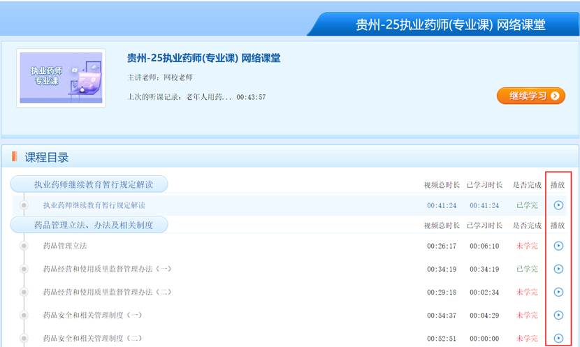 点击学习,即可听课学习,APP学习与PC学习同步